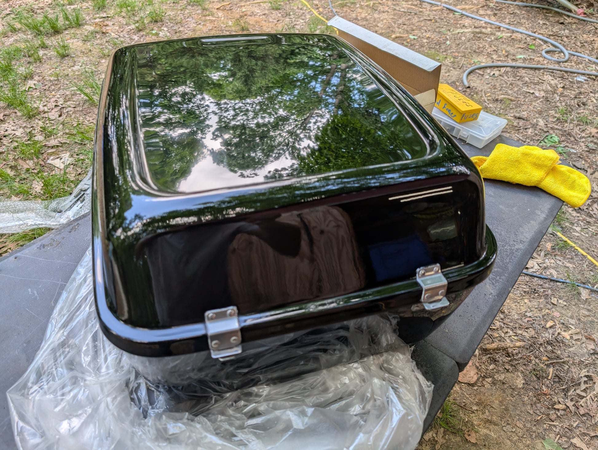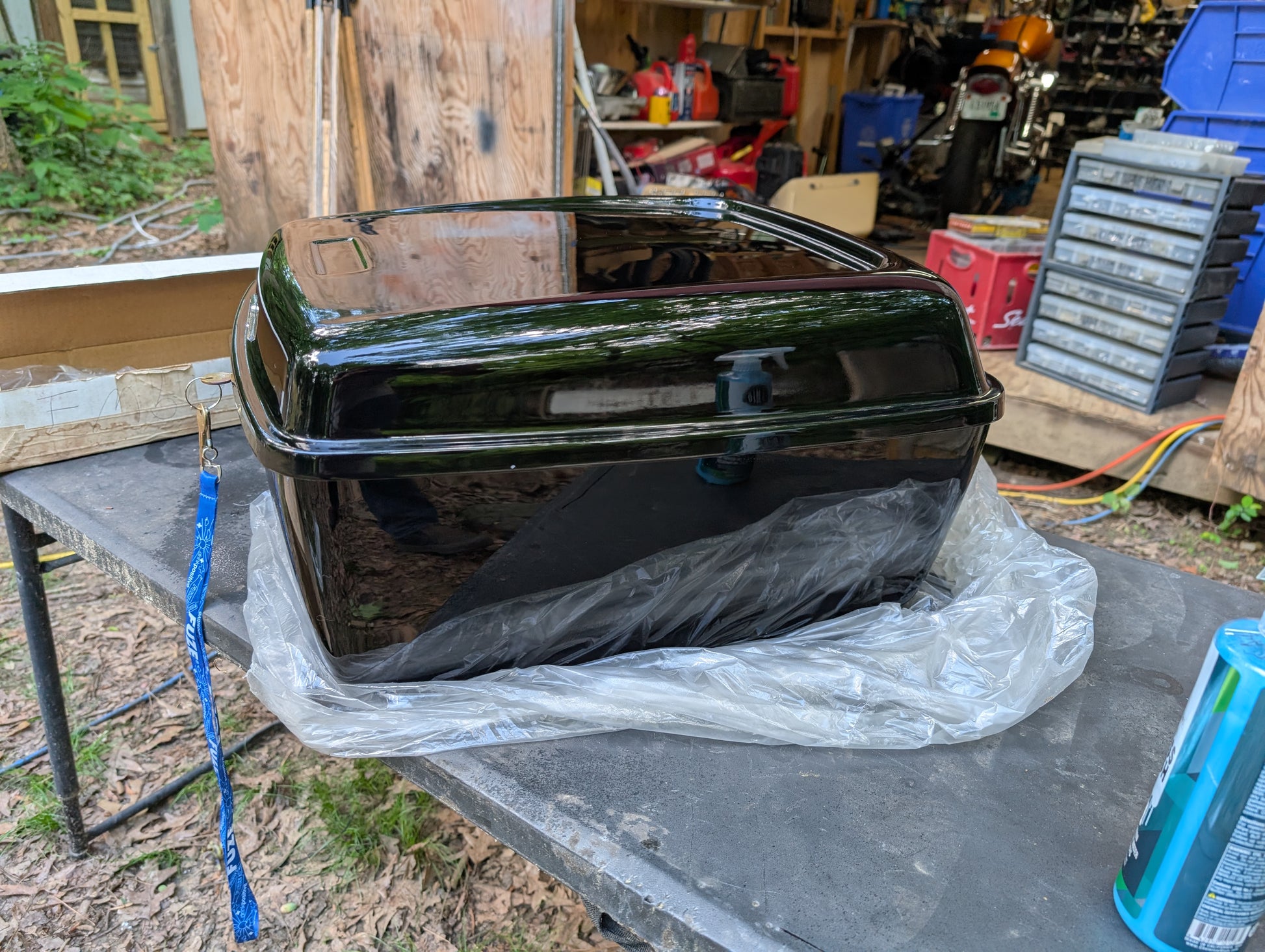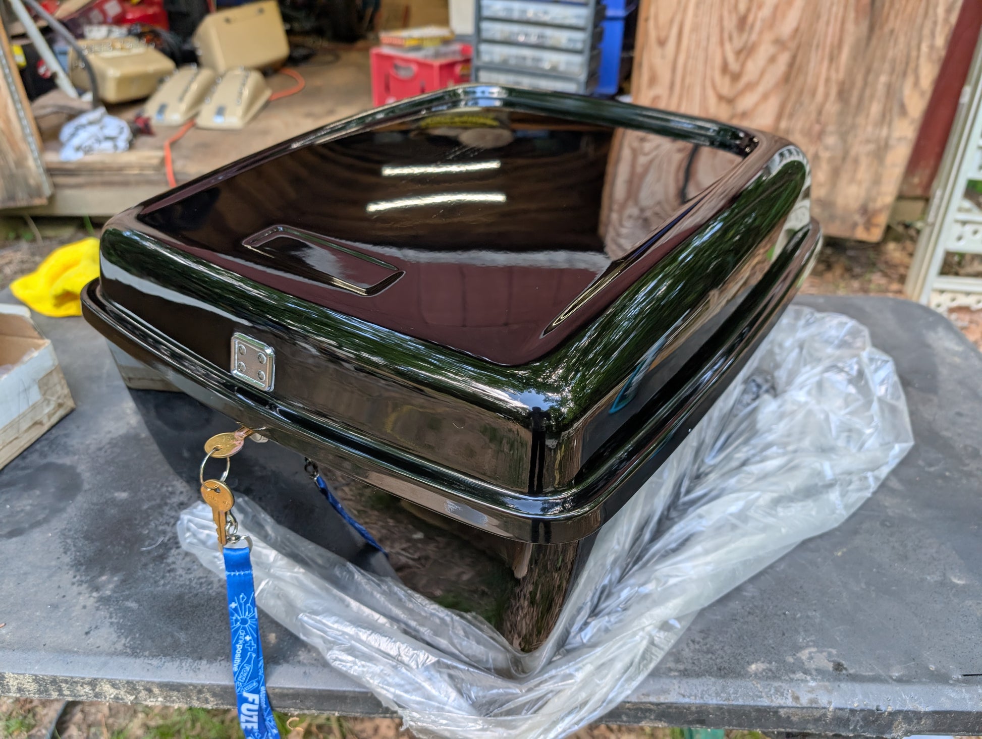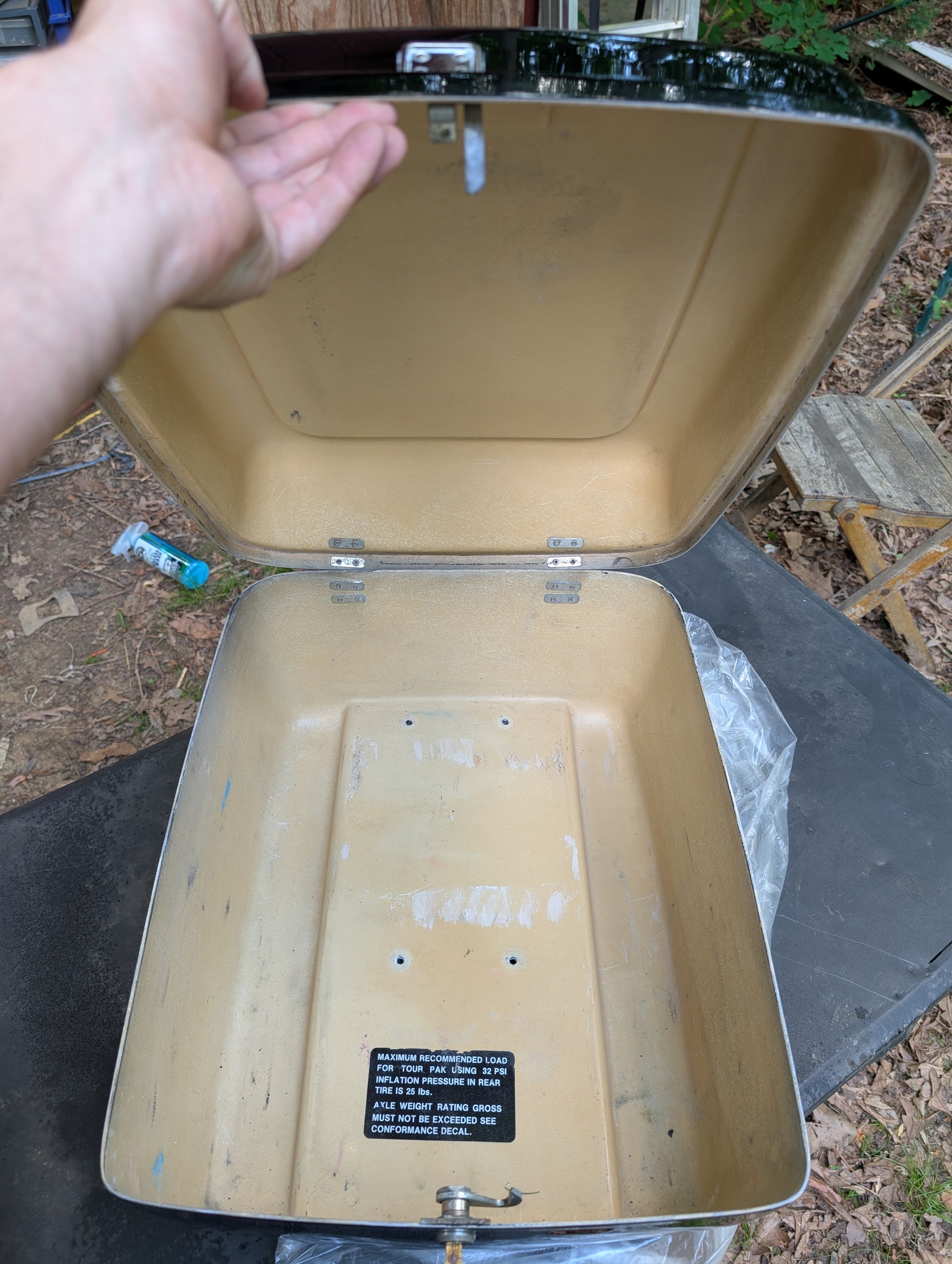 Absolutely mint, maybe even NOS Panhead or early Shovelhead Tour Pack . This thing is way too nice for me. And not really my style. But would look great on a retro dresser. Seriously, look at that paint.
