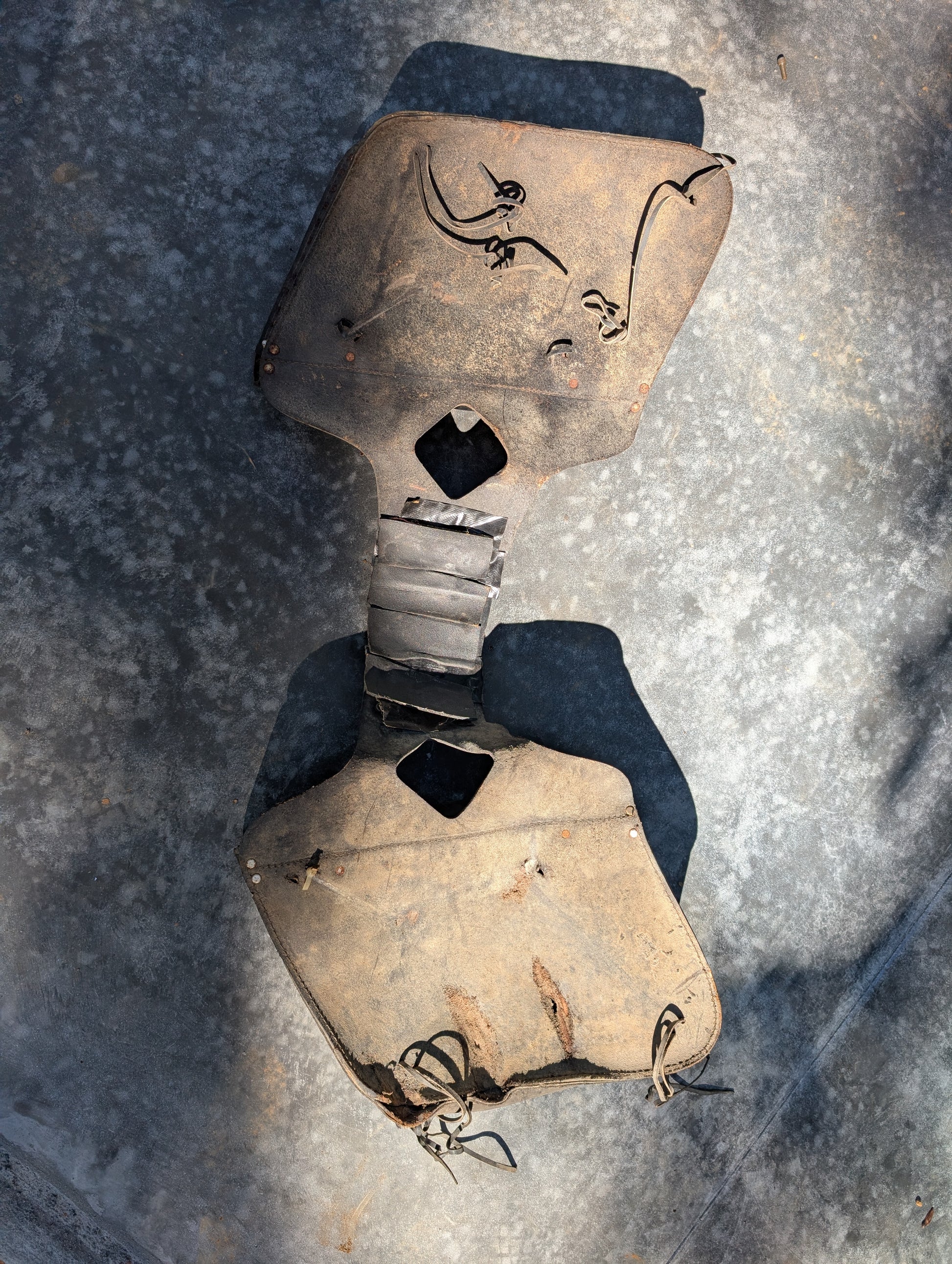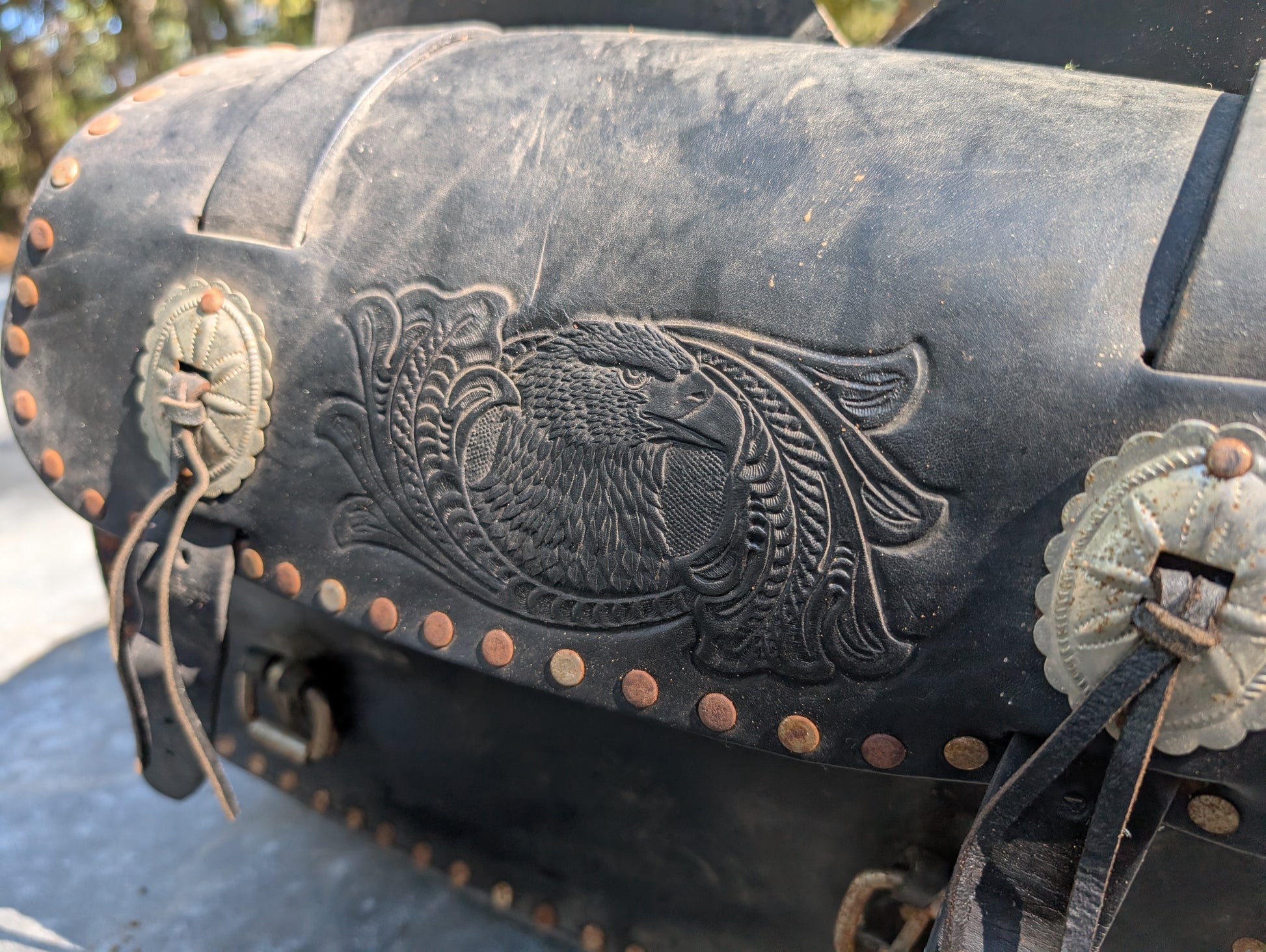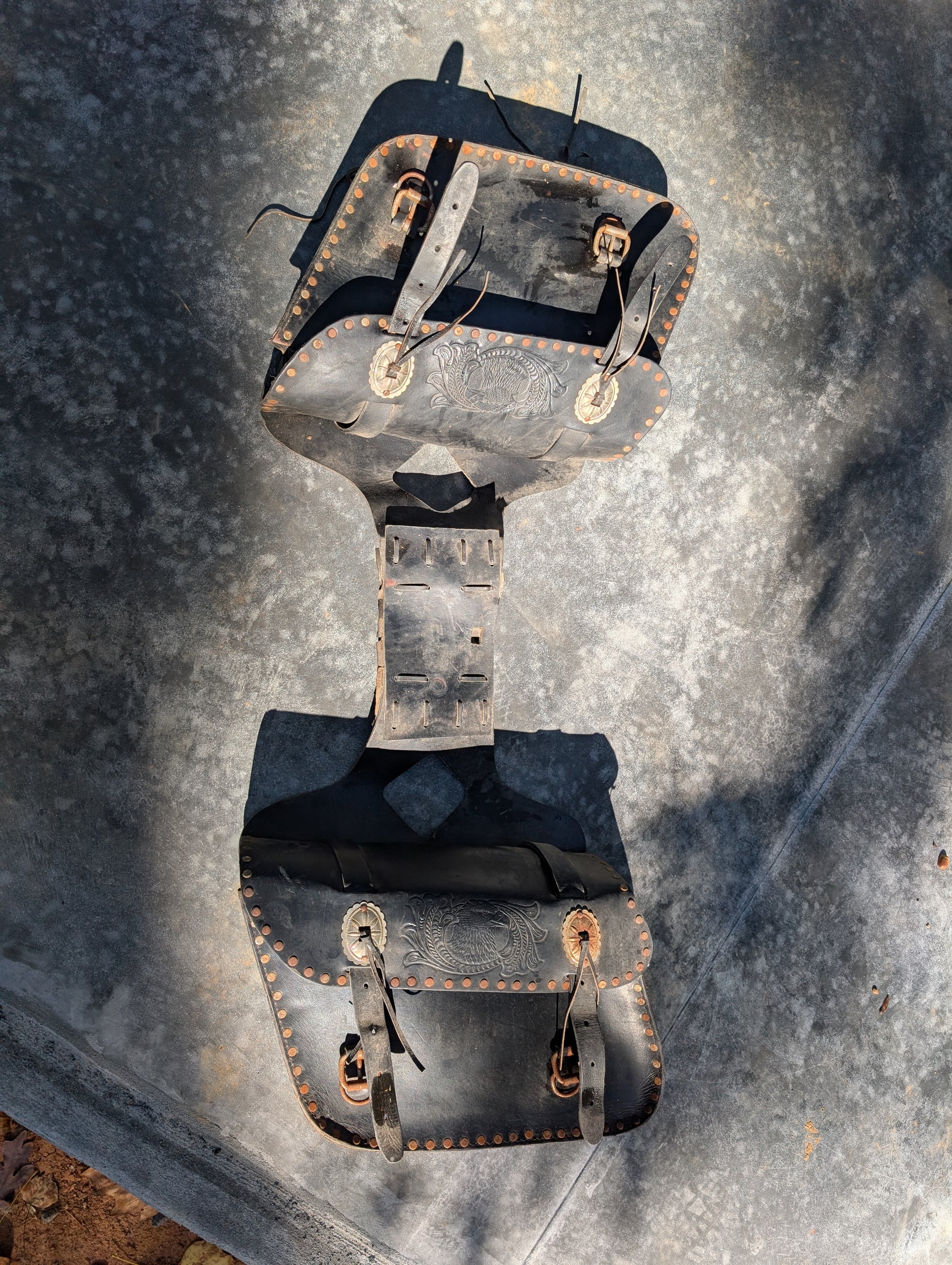 Pictures speak for themselves, set of vintage throw over leather saddlebags, definitely got some patina going on, but would be cool on the right bike.